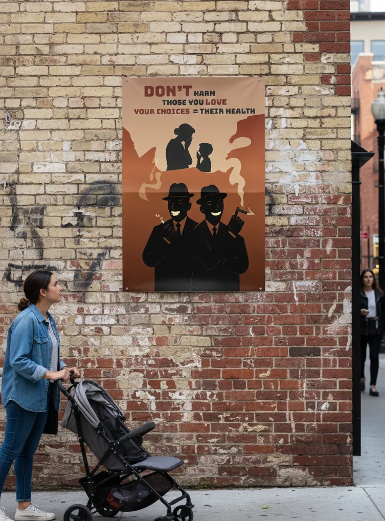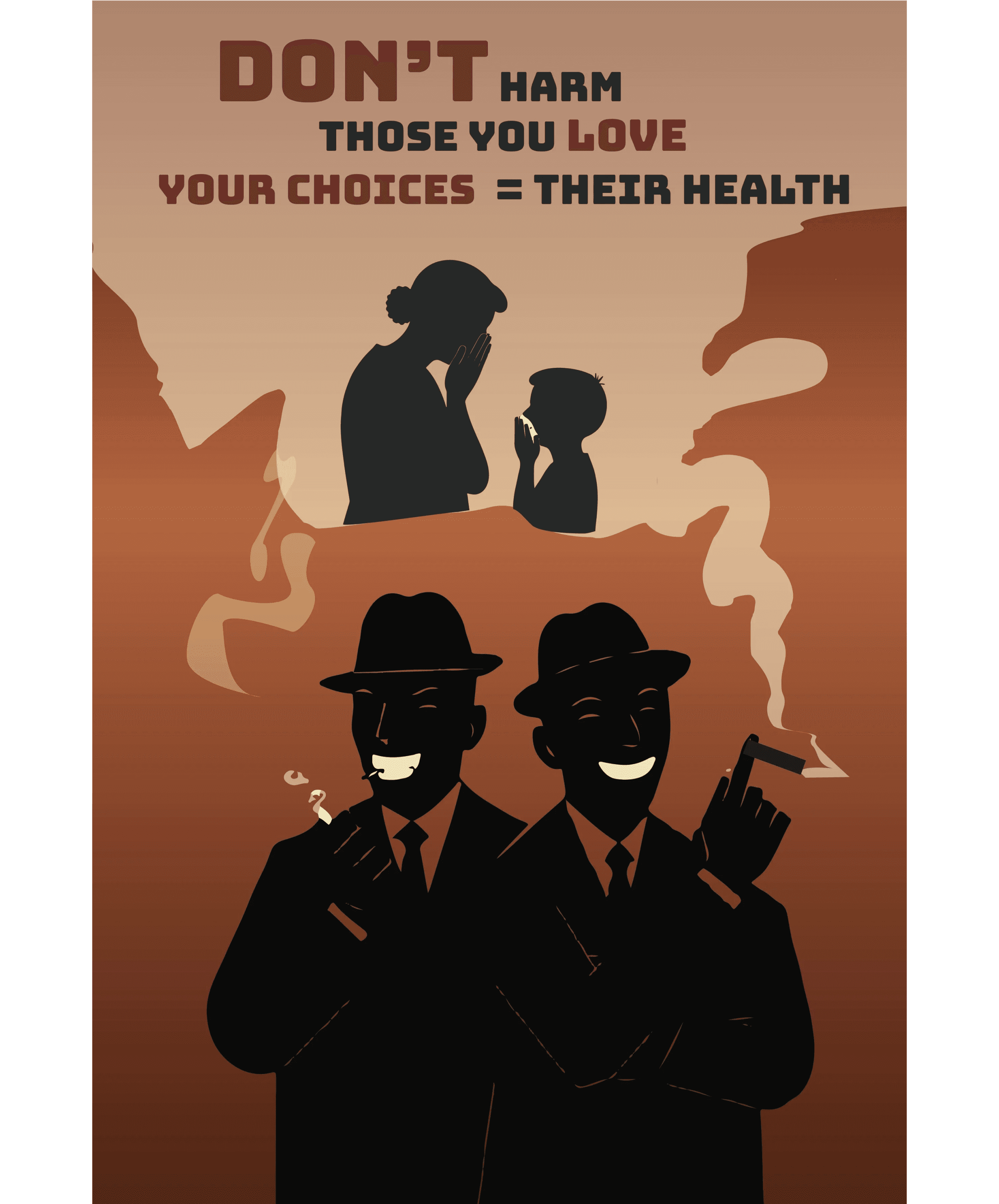 This poster highlights the harm smoking causes to human health and emphasizes how personal choices can negatively affect not only oneself, but also the people we care about.
